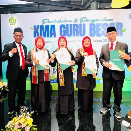 Penyerahan KMA tersebut dirangkaikan dengan kegiatan Pembekalan Guru Besar yang digelar di Grand Serpong Hotel, Kota Tangerang, Banten, Senin (15/12/2025). Kegiatan ini dihadiri Menteri Agama Republik Indonesia Prof. Dr. KH. Nasaruddin Umar, M.A., jajaran pimpinan Kementerian Agama, pejabat Eselon I dan II, serta para Guru Besar di lingkungan Kementerian Agama RI.