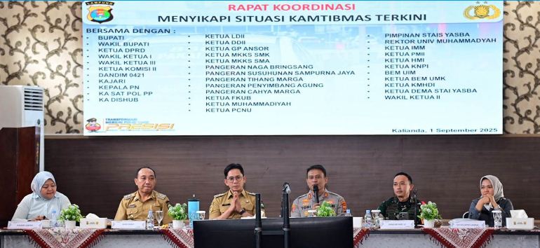 Hal tersebut ia sampaikan dalam Rapat Koordinasi (Rakor) Forkopimda membahas situasi kamtibmas terkini di Aula GWL Mapolres Lampung Selatan, Senin (1/9/2025).