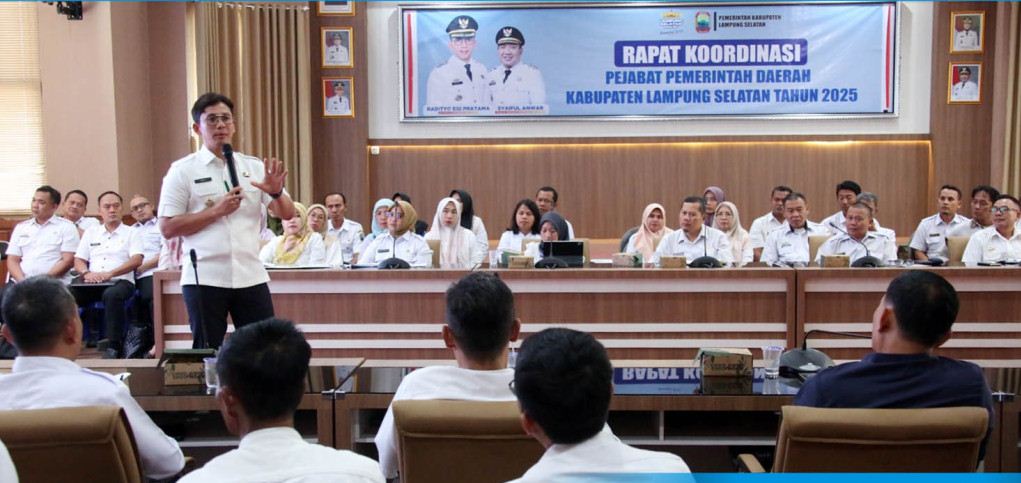 Lampung Selatan, MERATA.ID – Pemerintah Kabupaten (Pemkab) Lampung Selatan menggelar rapat koordinasi bulanan di Aula Krakatau, kantor bupati setempat, Rabu (10/9/2025). Rapat yang biasanya hanya diikuti pejabat eselon II kali ini digelar dalam dua sesi, dengan melibatkan hingga pejabat eselon IV yang membidangi perencanaan.