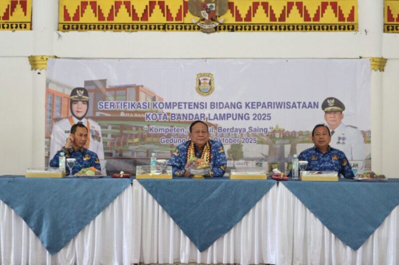 Bandarlampung, MERATA.ID – Pemerintah Kota (Pemkot) Bandar Lampung terus menunjukkan komitmennya dalam membangun sektor pariwisata dan ekonomi kreatif yang berdaya saing tinggi. Salah satu langkah nyata diwujudkan melalui kegiatan Fasilitasi Sertifikasi Kompetensi bagi Tenaga Kerja Bidang Pariwisata Tahun 2025, yang digelar di Gedung PKK Kota Bandar Lampung pada Rabu (1/10/2025).