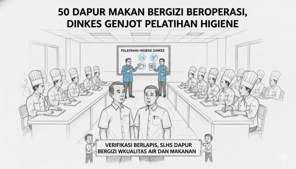 Bandarlampung, MERATA.ID – Dinas Kesehatan (Dinkes) Kota Bandar Lampung memaparkan serangkaian persyaratan mutlak yang harus dipenuhi oleh Dapur Makan Bergizi Gratis (MBG) untuk mendapatkan Sertifikat Laik Higiene Sanitasi (SLHS). Persyaratan ini mencakup pengujian teknis yang ketat dan pelatihan wajib bagi seluruh petugas dapur.